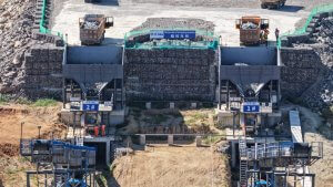 ? ? ? ? 此次投產(chǎn)的2號砂石加工系統(tǒng)占地約11萬平方米,以片麻巖開挖料為原料,設(shè)計處理能力達(dá)855噸/小時,月生產(chǎn)能力46.25萬噸,是安哥拉迄今為止規(guī)模最大、技術(shù)最先進(jìn)的砂石加工系統(tǒng)。系統(tǒng)核心設(shè)備由南礦集團(tuán)提供,涵蓋JC顎式破碎機(jī)、CC單缸圓錐破碎機(jī)、HS反擊式破碎機(jī)、VS立軸沖擊式破碎機(jī)、YKR圓振動篩、ZKR直線篩、WCD螺旋洗砂機(jī)、HPF棒條給料機(jī)、GZG振動給料機(jī)等近50臺套設(shè)備,覆蓋粗碎、中碎、細(xì)碎、整形制砂、洗砂等全流程作業(yè)。該系統(tǒng)可穩(wěn)定生產(chǎn)六類成品骨料,充分滿足大壩主體混凝土工程建設(shè)所需的砂石骨料供應(yīng)需求。