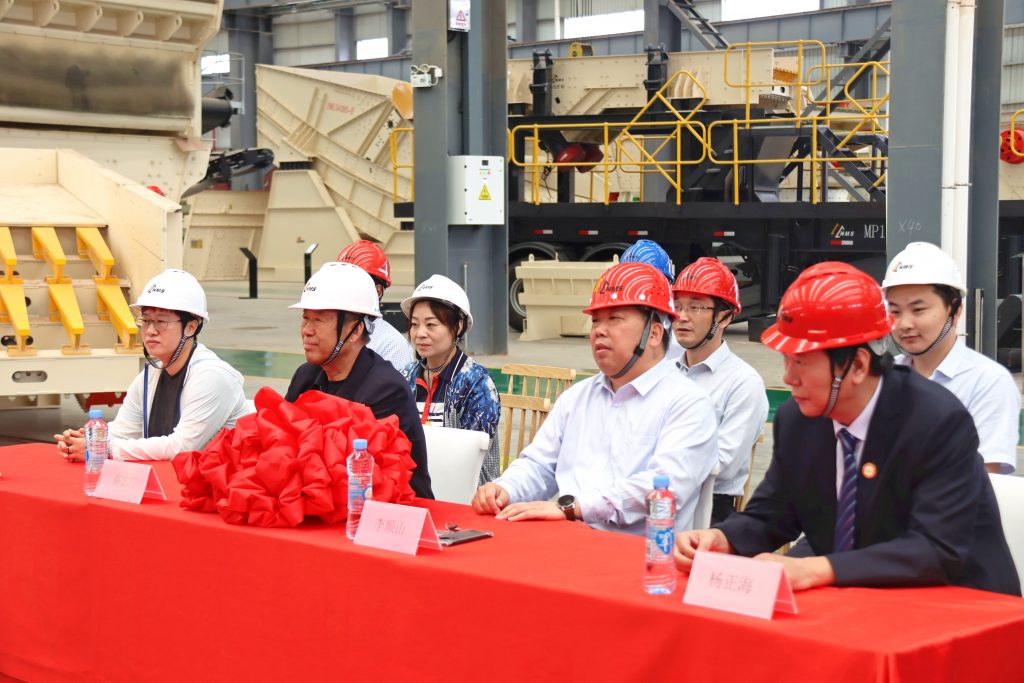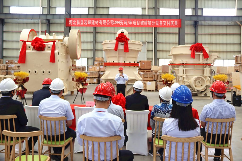 ? ? 5月24日,南昌礦山機(jī)械有限公司(下稱“南昌礦機(jī)”)舉行了河北易縣巖峰建材有限公司(下稱“易縣巖峰建材”)1500萬噸/年項(xiàng)目破碎篩分設(shè)備交付慶典。易縣巖峰建材董事長高巖、總經(jīng)理高志廣,南昌礦機(jī)董事長李順山等人出席。