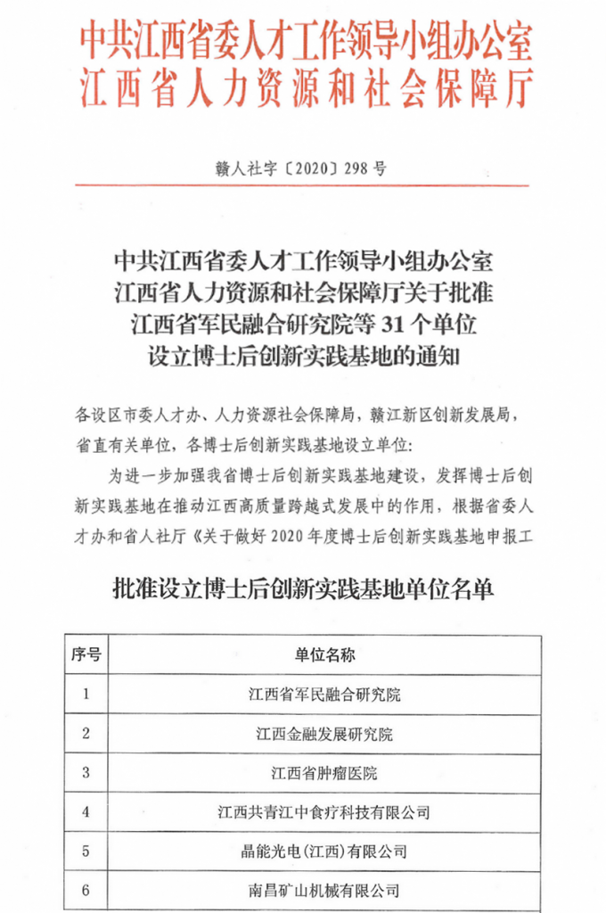 ? ? 本次設(shè)立新一批博士后創(chuàng)新實踐基地,是經(jīng)中共江西省委人才工作領(lǐng)導小組辦公室及江西省人力資源和社會保障廳研究決定,旨在進一步加強江西省博士后創(chuàng)新實踐基地建設(shè),發(fā)揮博士后創(chuàng)新實踐基地在推動江西高質(zhì)量跨越式發(fā)展中的作用。此次南昌礦機獲批為博士后創(chuàng)新實踐基地,再次充分體現(xiàn)了國家各級政府對南昌礦機的綜合實力,尤其是技術(shù)創(chuàng)新能力、科研能力及人才培養(yǎng)能力的充分肯定。