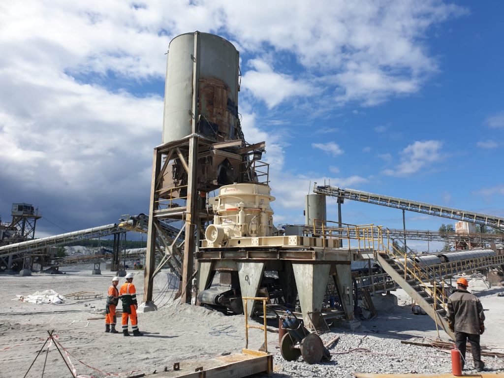 ? ? 此前,南昌礦機(jī)的一臺 JC顎式破碎機(jī)、兩臺MC多缸圓錐破碎機(jī)應(yīng)用于拉法基集團(tuán)俄羅斯項目。自設(shè)備抵達(dá)現(xiàn)場開始,南昌礦機(jī)當(dāng)?shù)氐姆?wù)工程師為客戶提供了全方位的服務(wù),培訓(xùn)、現(xiàn)場指導(dǎo)、幫助客戶進(jìn)行技術(shù)改造……這一系列工作大大縮短了設(shè)備的安裝調(diào)試時間,設(shè)備一次啟動成功后便正式投入生產(chǎn)。運(yùn)行至今,設(shè)備運(yùn)轉(zhuǎn)良好,客戶對南昌礦機(jī)的設(shè)備與服務(wù)給予了高度評價。