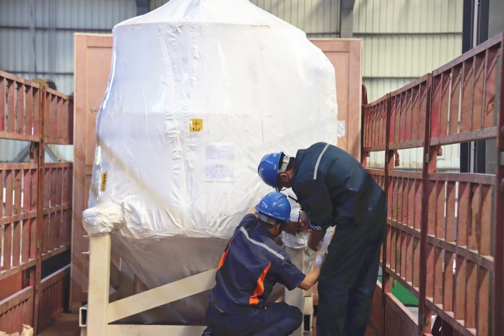 南昌礦機(jī)工作人員正打包設(shè)備并裝車