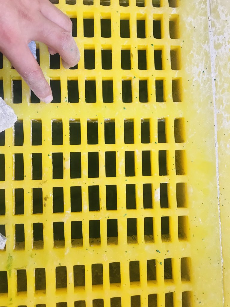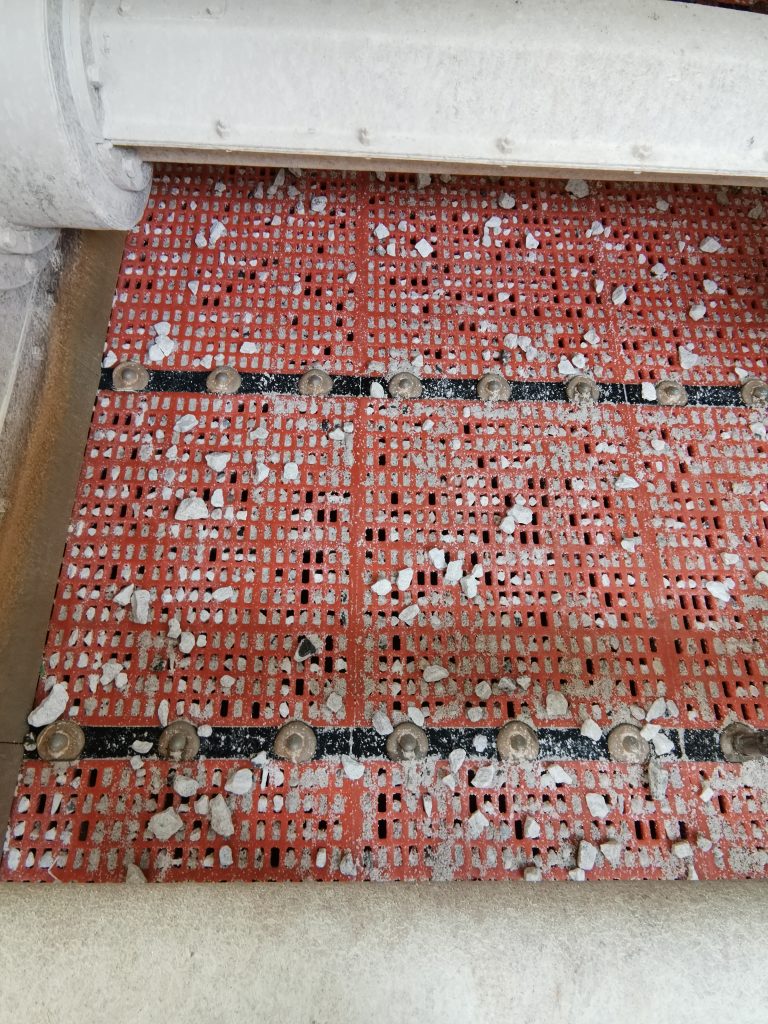 ? ? 無奈之下,宜春鉭鈮礦的工作人員準備使用某國外著名品牌的橡膠篩網(wǎng),但更換成本高、改造時間長等因素讓他們一直猶豫。在猶豫之時,南昌鑫力的技術(shù)人員為他們帶來了滿意的解決方案,即不改變原篩網(wǎng)結(jié)構(gòu)型式,將原來14x30mm的孔改為12x30mm,將普通聚氨酯篩網(wǎng)更換為南昌鑫力生產(chǎn)的MDI雙硬度防堵篩網(wǎng)。該方案得到了江鎢集團領(lǐng)導(dǎo)和宜春鉭鈮礦領(lǐng)導(dǎo)的認可,雙方于2020年3月簽訂了合同,4月26日篩網(wǎng)安裝完成并投入使用。