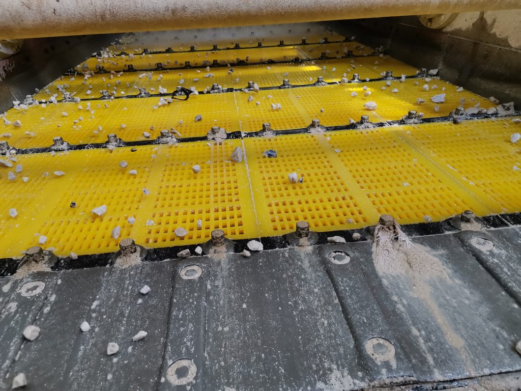 ? ? 7月份宜春鉭鈮礦又在其YKR1645篩機上使用了南昌鑫力的防堵篩網(wǎng),使用效果良好。此外,宜春鉭鈮礦還將試用南昌鑫力生產(chǎn)的1x15mm聚氨酯防堵篩網(wǎng)。